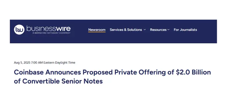 Coinbase Launches $2B Convertible Notes Offering with High Premium